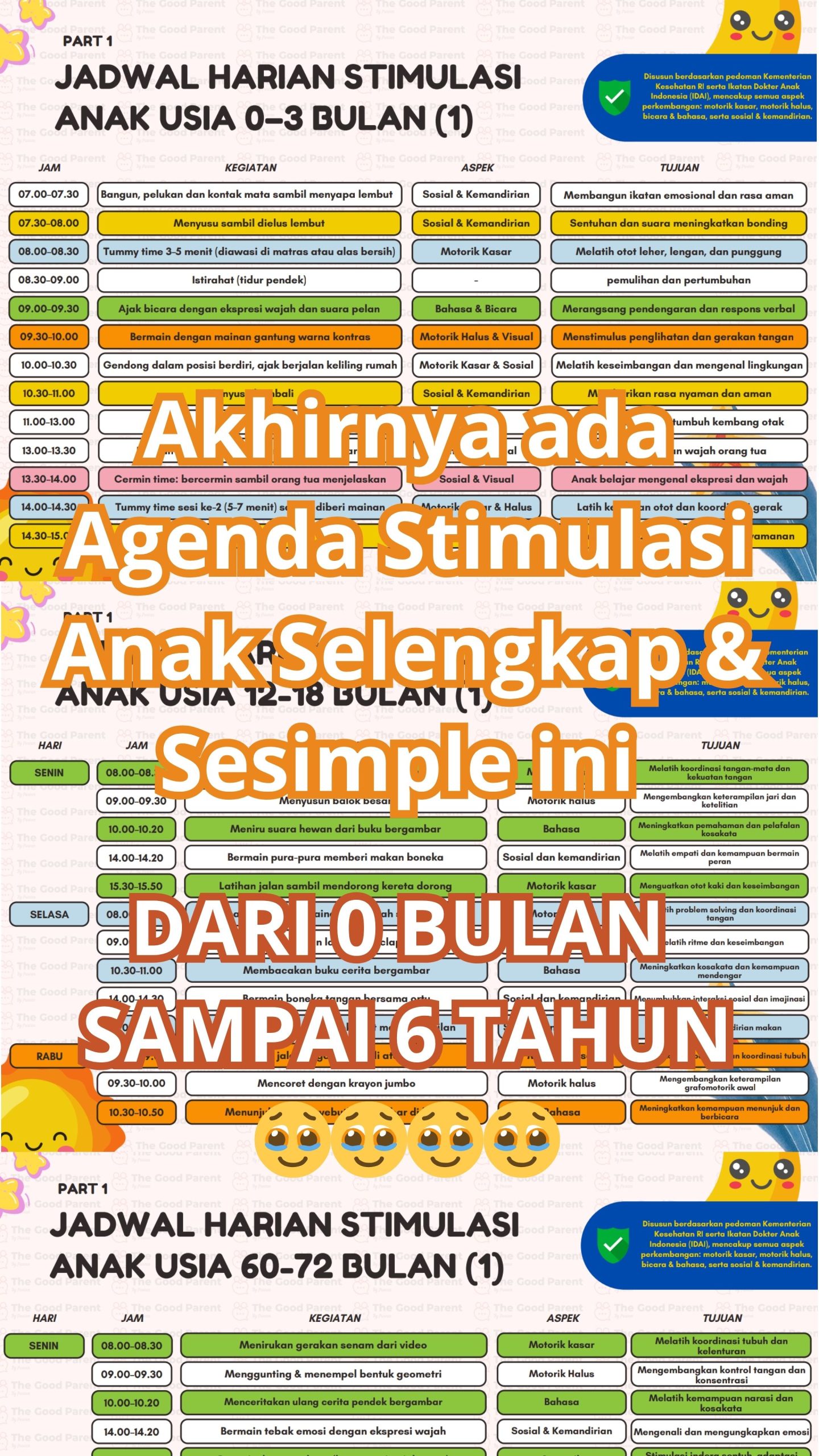 Agenda Stimulasi Anak 0-6 tahun lengkap dengan skrining checklist milestone tumbuh kembang