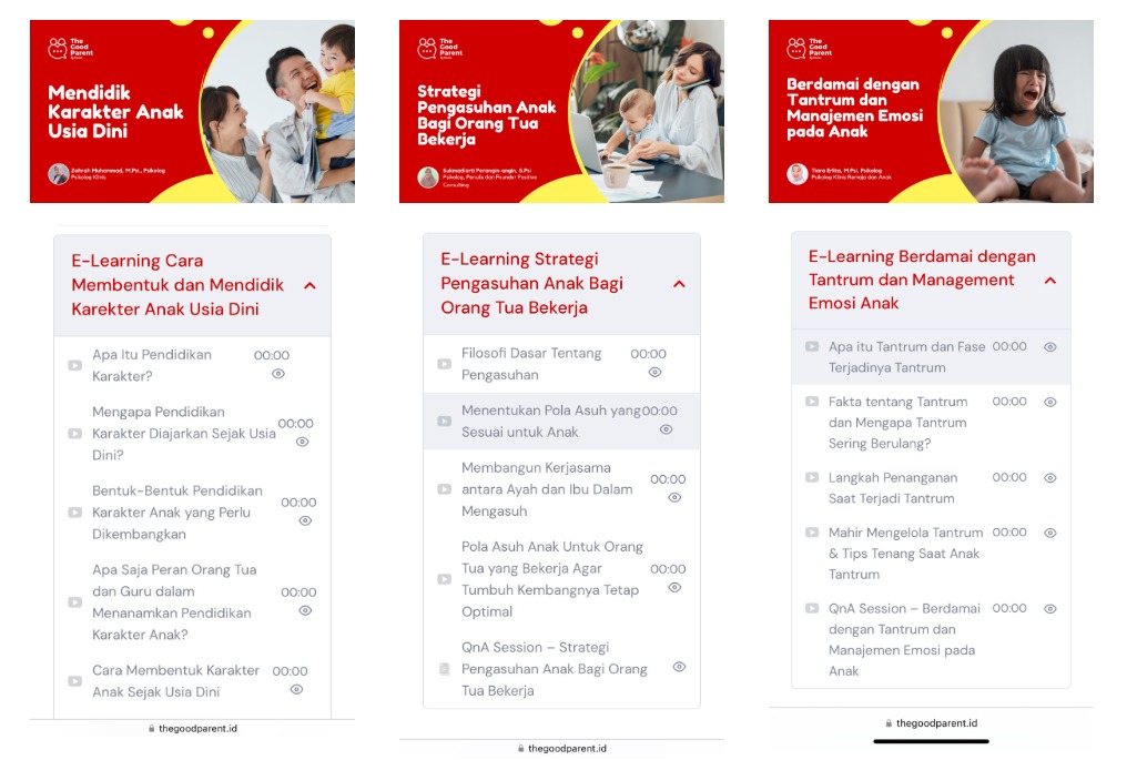 "Sangat membantu sekali buat saya jadi gak bingung lagi mau kasih aktifitas apa ke anak, juga yang paling saya senang adalah bonusnya dari good parent itu kita gratis akses ke e-learning nya, jadi bisa belajar belasan materi daging free. thank you good parent"