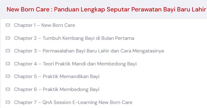 Program khusus paket lengkap yang berisi 5 E-Learning Newborn Care dengan total 31 chapter