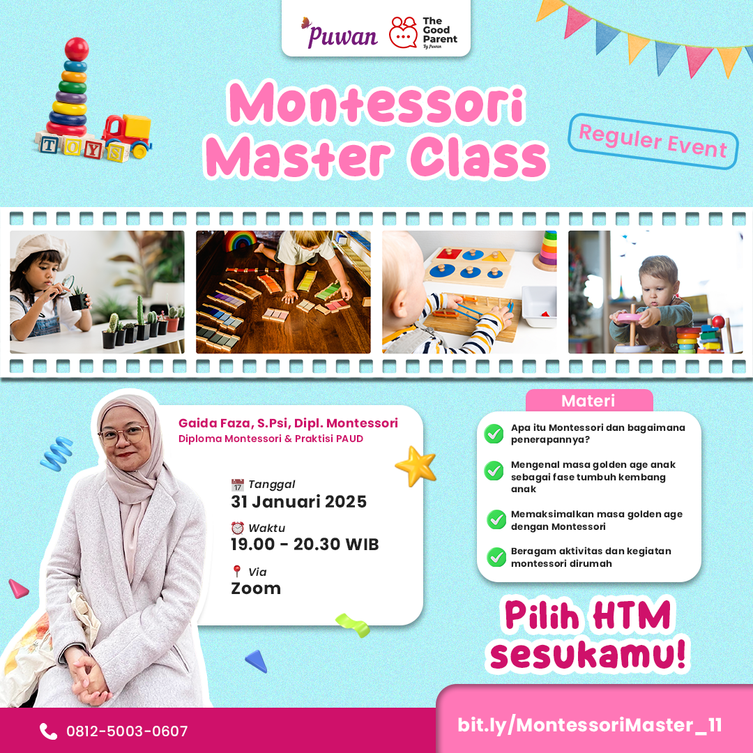 Nah Bunda di bulan Januari nanti, The Good Parent akan membahas tuntas Metode Montessori dalam kelas Montessori Master Class bersama montessori practitioner. Yuk Bunda cek dulu poster dan profilenya..