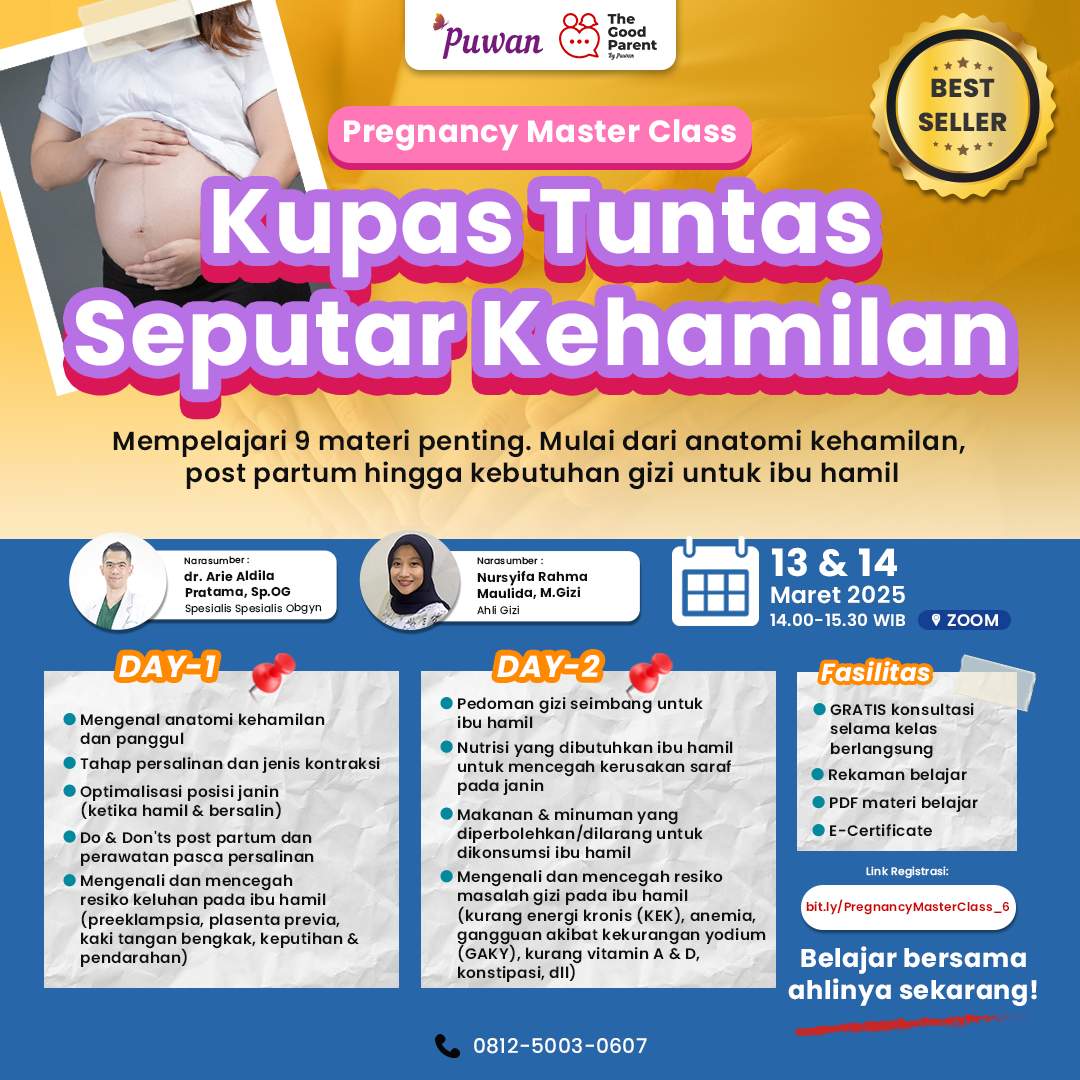 Nah Bunda di bulan Maret nanti, The Good Parent akan membahas tuntas masalah tersebut dalam kelas Pregnancy Expert Class bersama para ahli yaitu dokter spesialis obgyn dan ahli gizi. Yuk Bunda cek dulu poster dan profilenya..