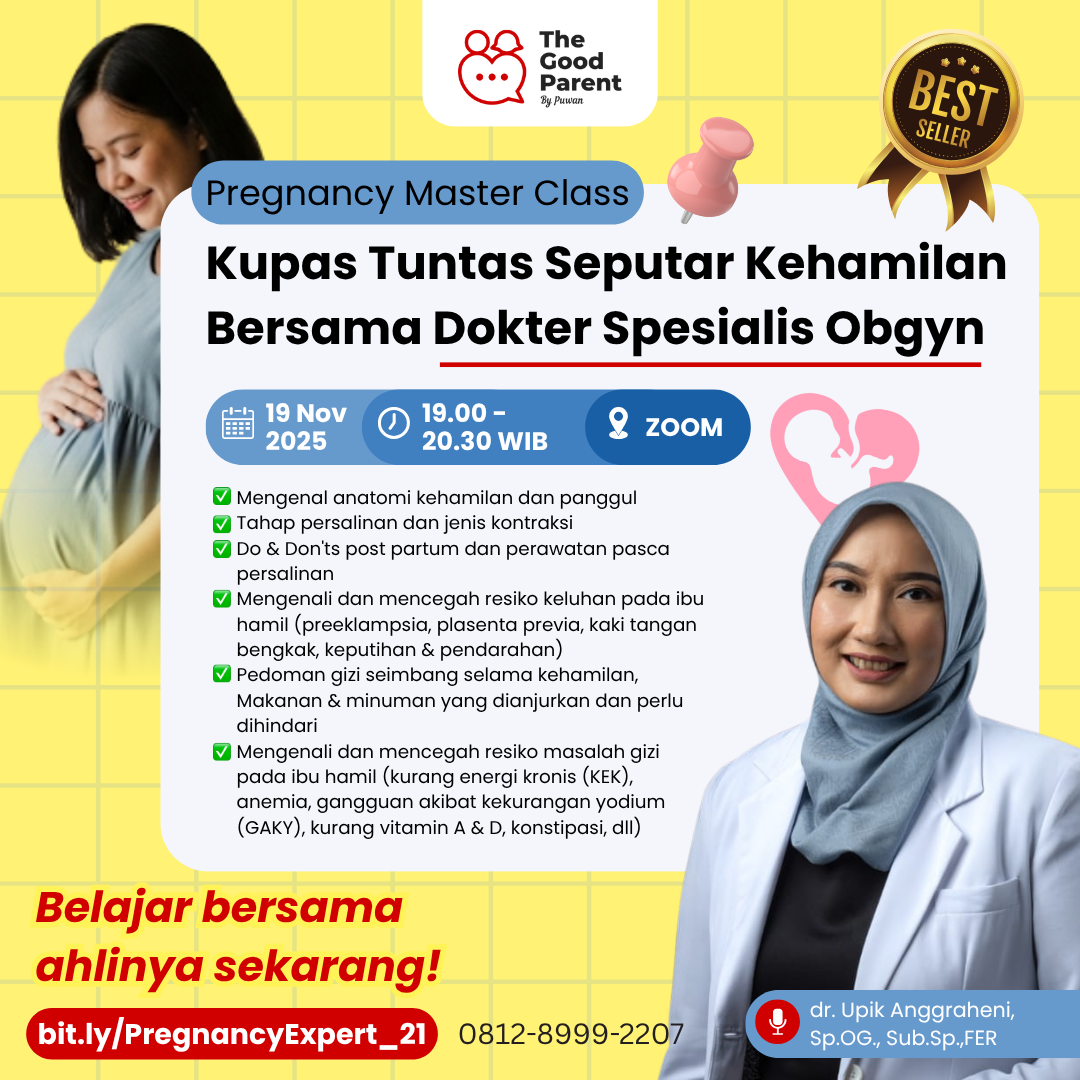 Nah Bunda di bulan November nanti, The Good Parent akan membahas tuntas masalah tersebut dalam kelas Pregnancy Expert Class bersama dokter spesialis obgyn. Yuk Bunda cek dulu poster dan profilenya..