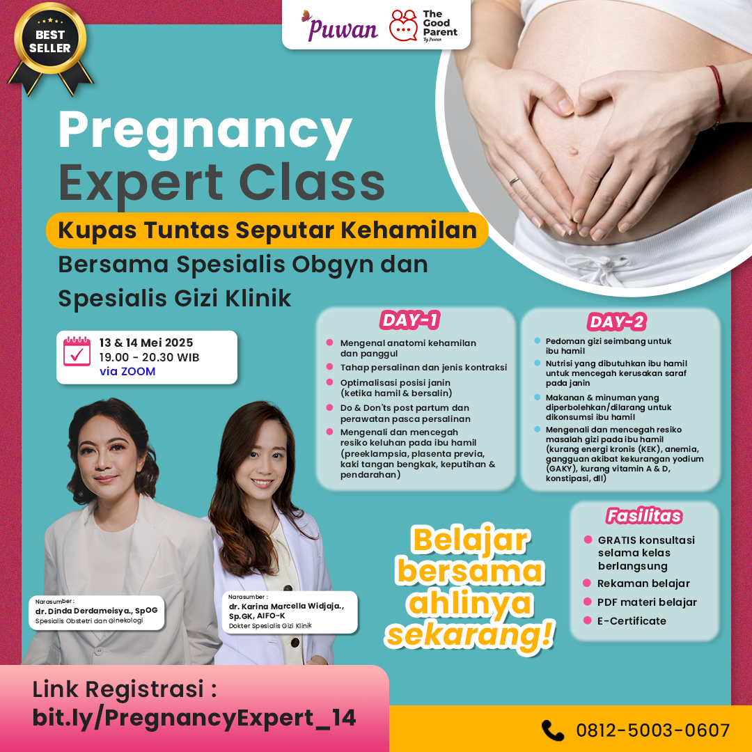 Nah Bunda di bulan Mei nanti, The Good Parent akan membahas tuntas masalah tersebut dalam kelas Pregnancy Expert Class bersama para ahli yaitu dokter spesialis obgyn dan ahli gizi. Yuk Bunda cek dulu poster dan profilenya..