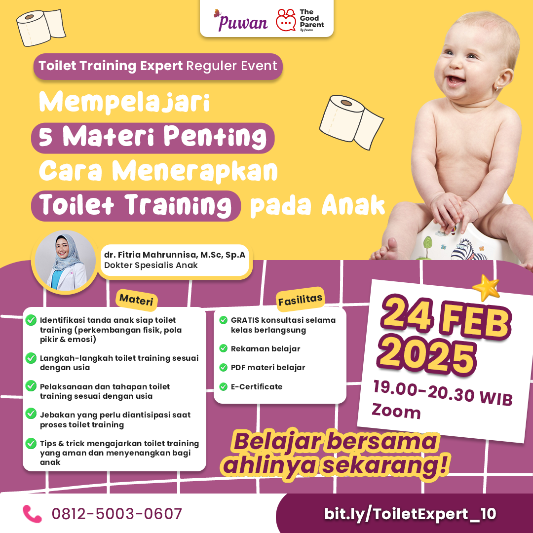 Nah Bunda di bulan Februari nanti, The Good Parent akan membahas tuntas masalah tersebut dalam kelas Toilet Training Expert bersama Dokter Spesialis Anak. Yuk Bunda cek dulu poster dan profilenya..